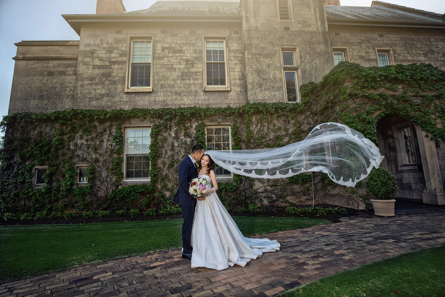 If you are going to have a veil, a long veil is the way to go. What an elegant photo collection of the bride and groom produced here by our very own Adelaide wedding photographers.
